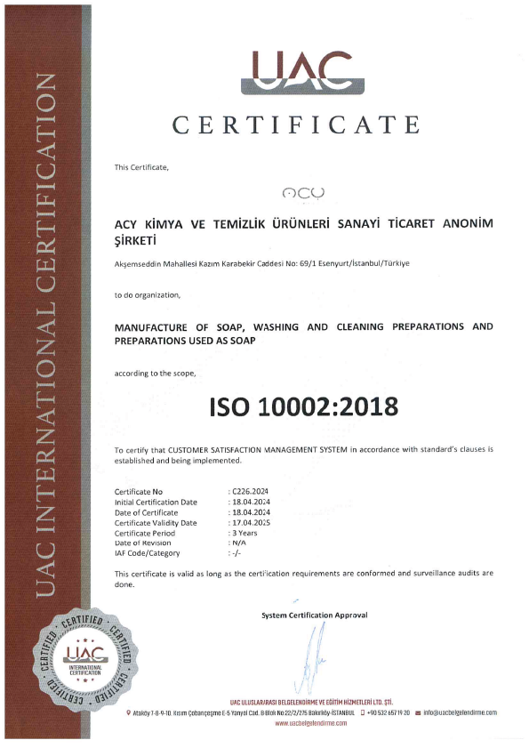 © ACY KİMYA VE TEMİZLİK ÜRÜNLERİ SAN. TİC. A.Ş.